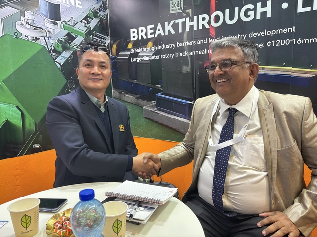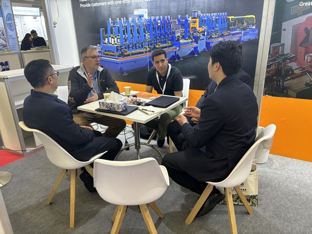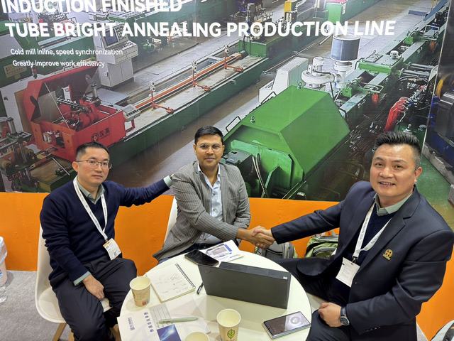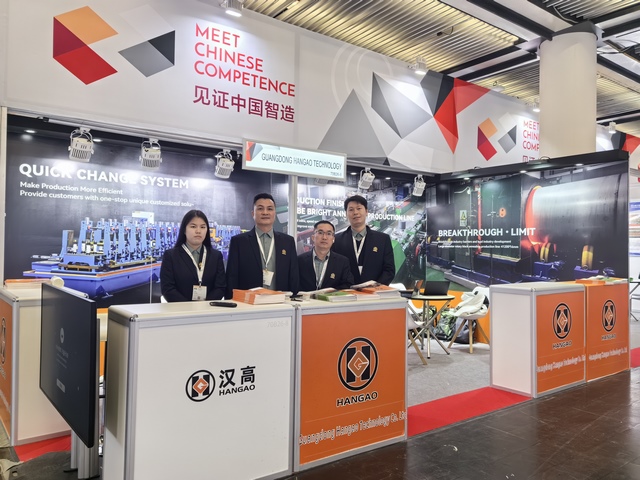漢高科技亮相展會,與全球各地的不銹鋼制管企業(yè)進行技術交流。